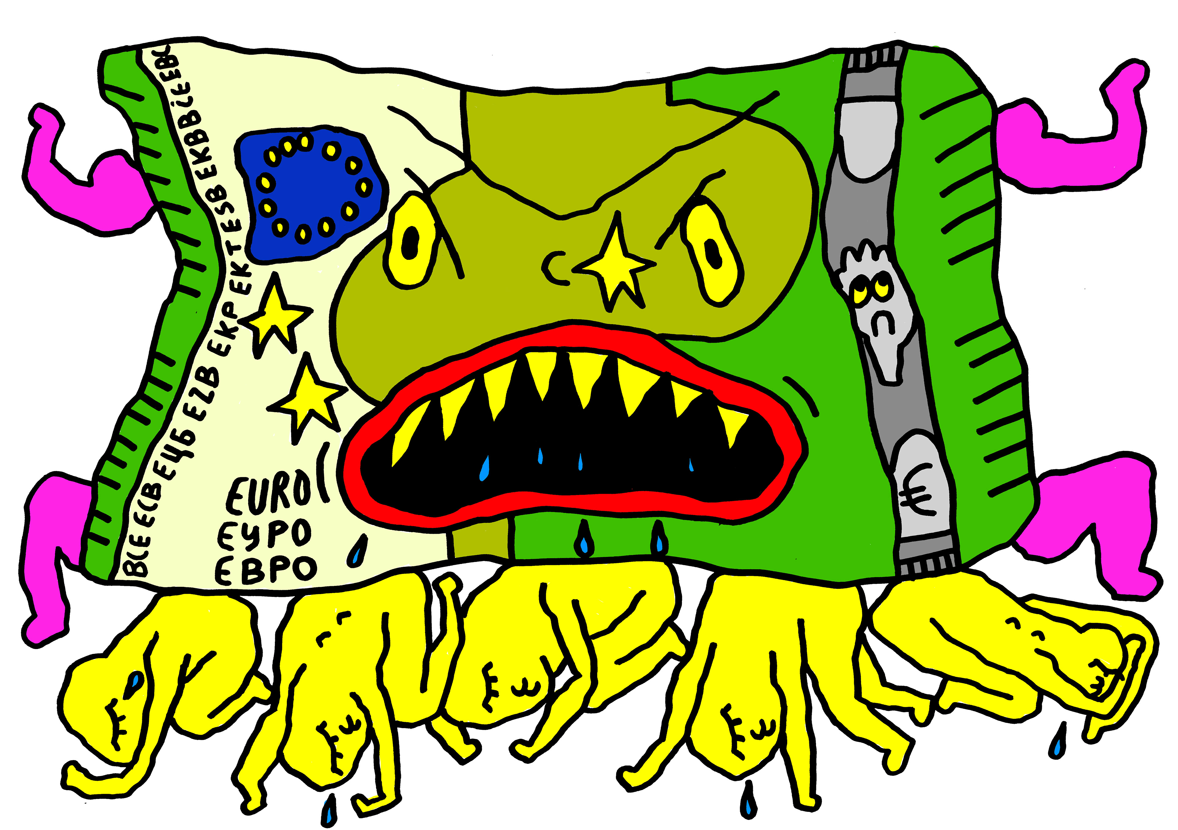 2025- I realized the illustration for Gaby Weber's article on the phenomenon of de-banking, published in the independent online magazine Erbacce Resistenti.